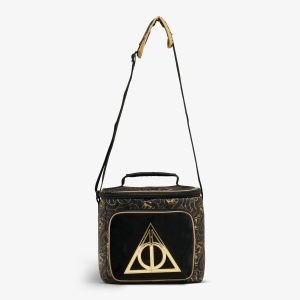Unveil the Dark Arts??with an extraordinary cooler bag inspired by the most forbidden magic from HARRY POTTER’s??wizarding world. This convenient hands-free cooler is shrouded in darkness (it’s entirely black. inside and out) with gold-tone trims and details. including a gold metallic 3D mold depicting the Sign of the Deathly Hallows.