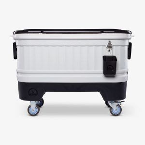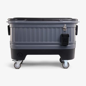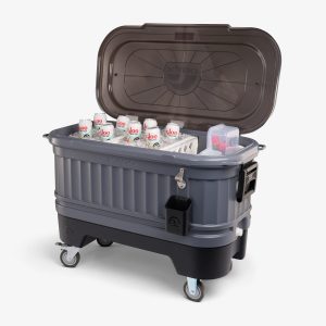 Make your next party cooler than the last one with the built-for-hosting Party Bar — part cooler. part bar cart and 100% party essential. This rolling cooler is inspired by the outdoor beer chests found at a traditional Texas icehouse. but with way handier design details like locking caster wheels. bottle opener. dividers. bottle caddy and more. From just a few friends over to all-out revelry. Party Bar is ready for it all.