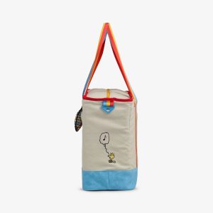 Happiness is dance parties with great friends. so join the cooler Peanuts party! Snoopy (the coolest beagle on the planet) and Woodstock (Snoopy’s little yellow partner in fun) are featured disco dancing the day away on this very cheerful and retro-colored insulated tote bag.
